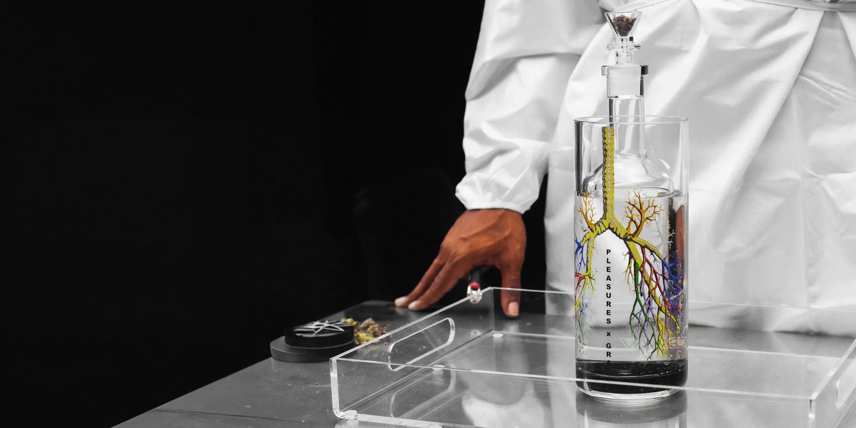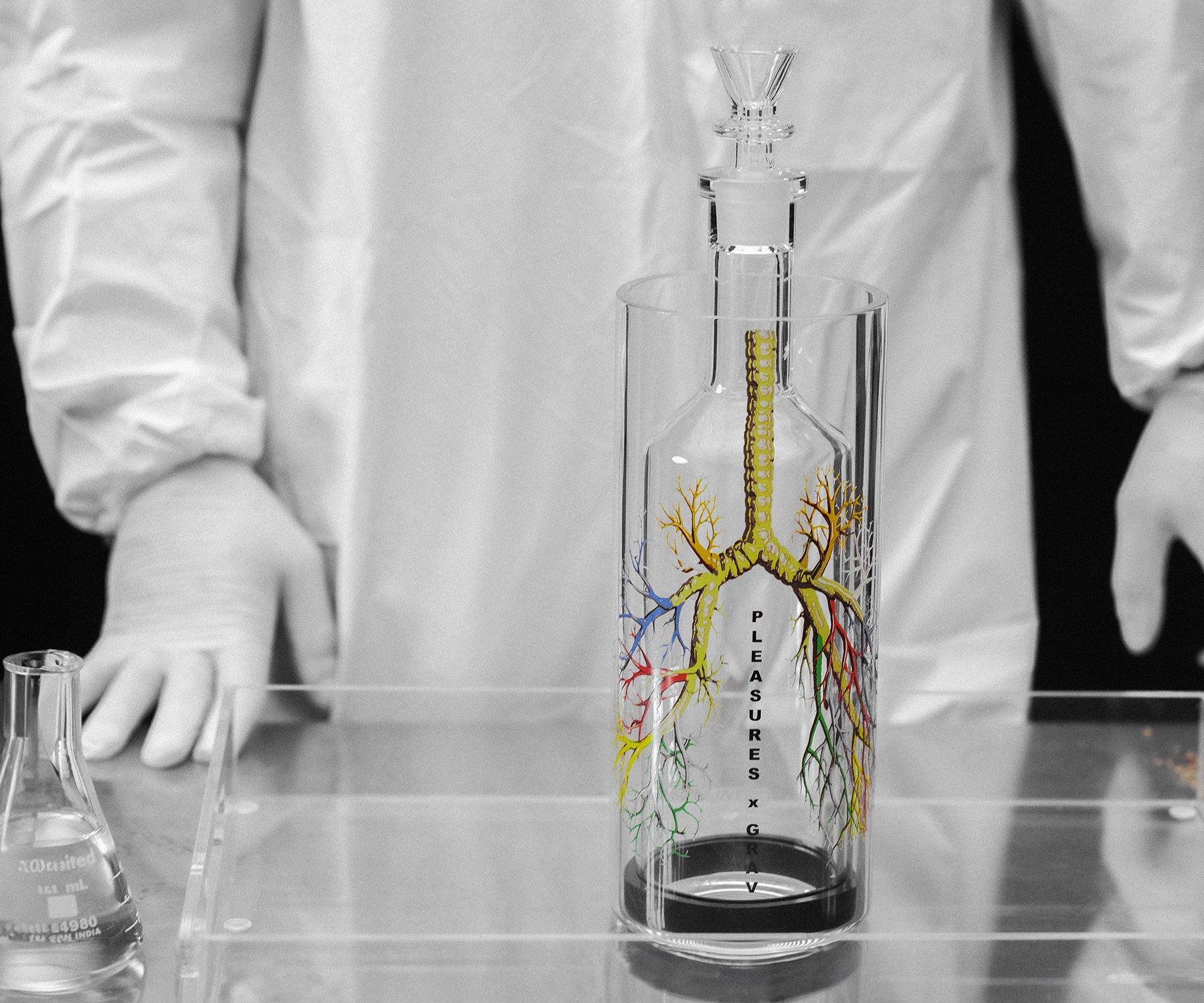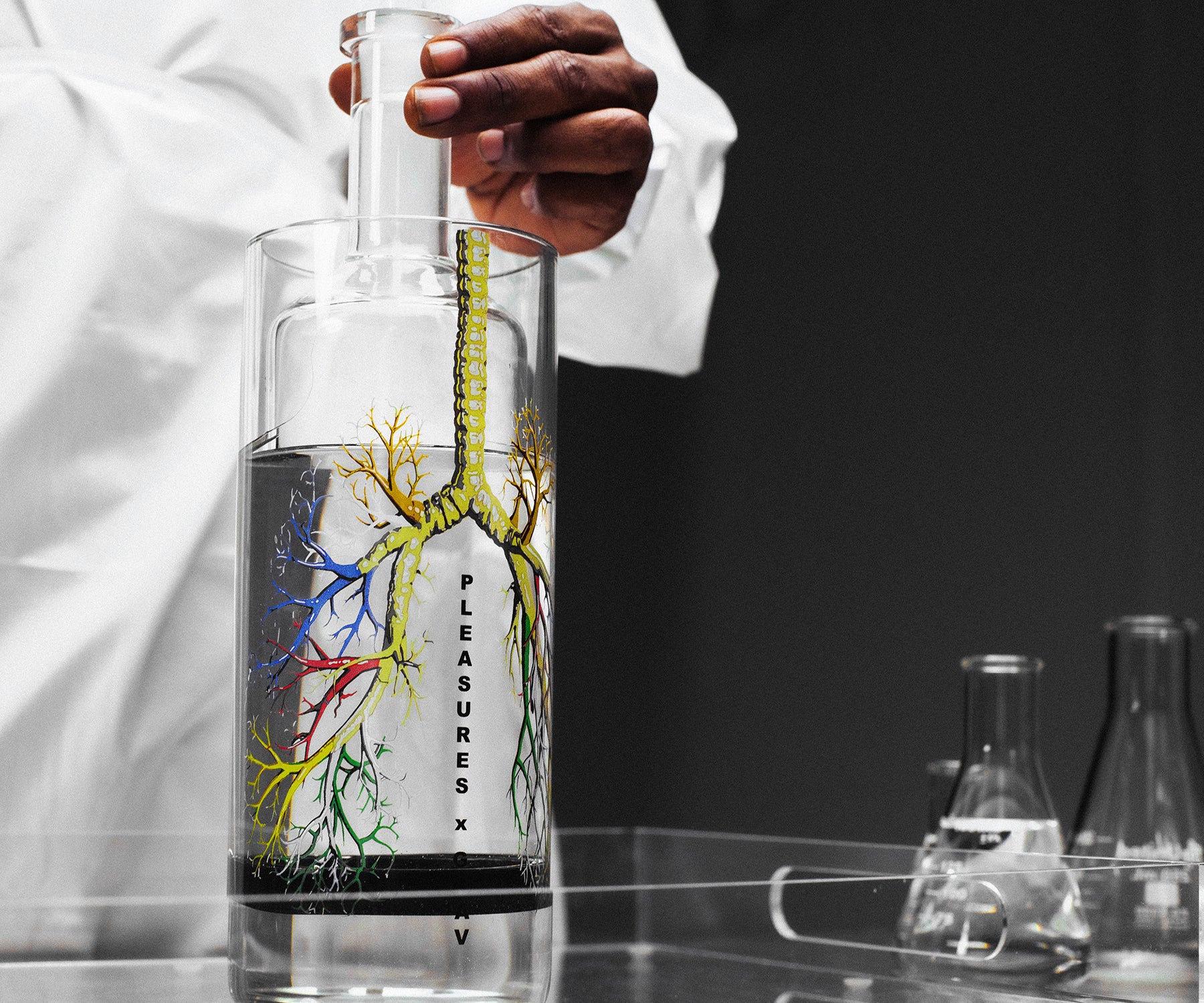 Streetwear icon PLEASURES has put a fresh spin on the OG glass gravity bong. The limited edition Breathe Again Gravitron sports a hyper-detailed decal of your lungs’ inner workings. So you blast your breathers while you marvel at every branch. Very meta.