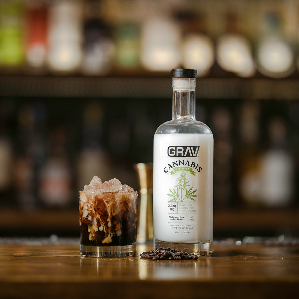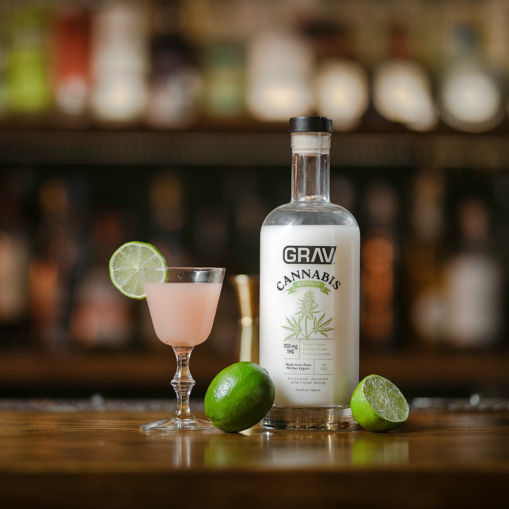 GRAV® Cannabis Spirit is a non-alcoholic spirit distilled from single strain fresh cannabis flower. It contains a blend of hemp-derived Delta-9 THC, CBD and full spectrum terpenes, offering a legal way to enjoy the effects of cannabis in a convenient beverage form.
