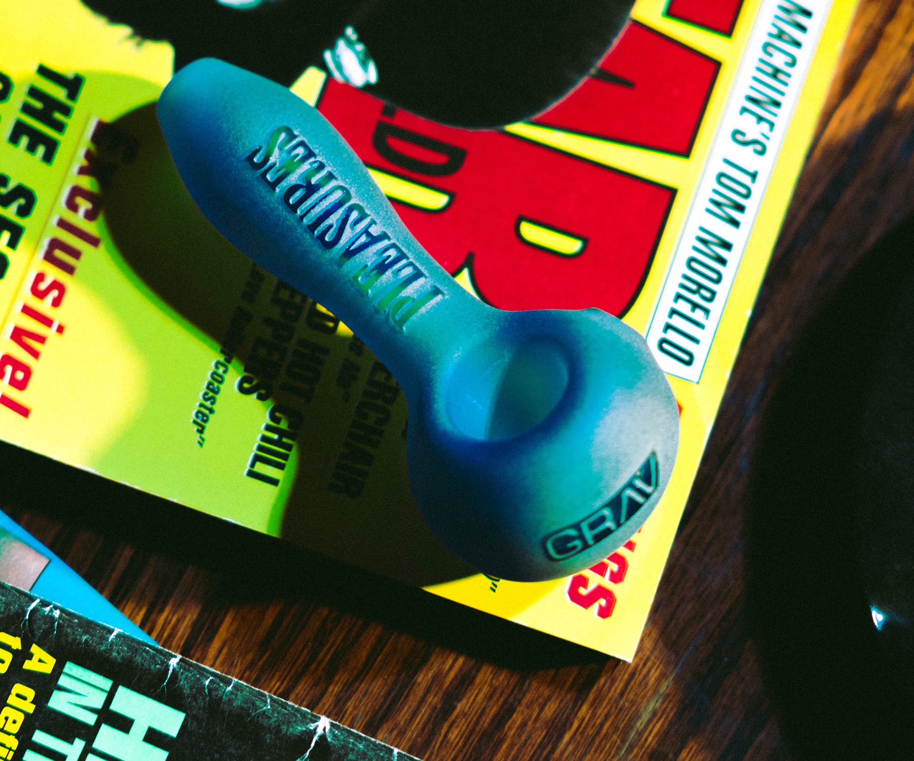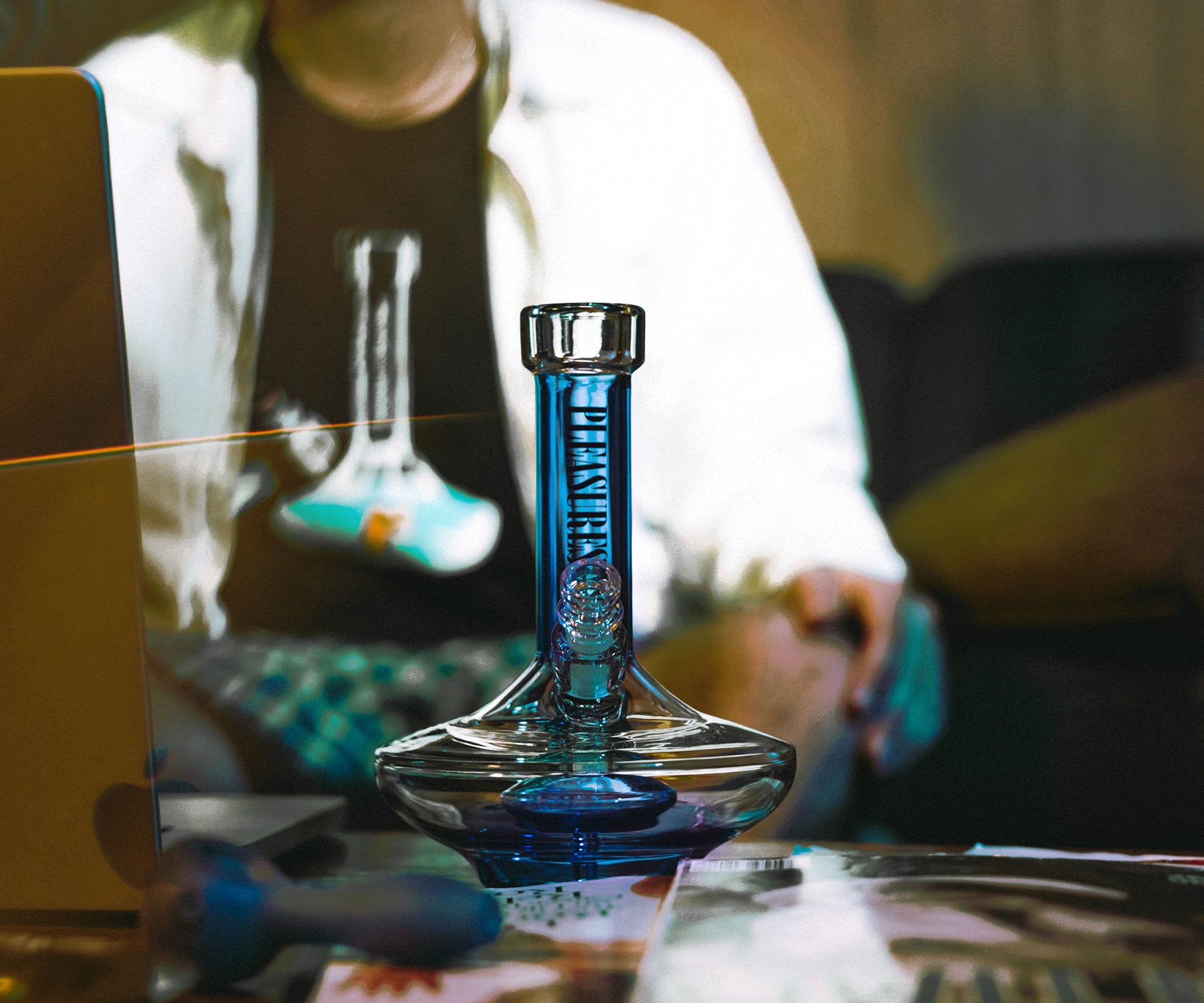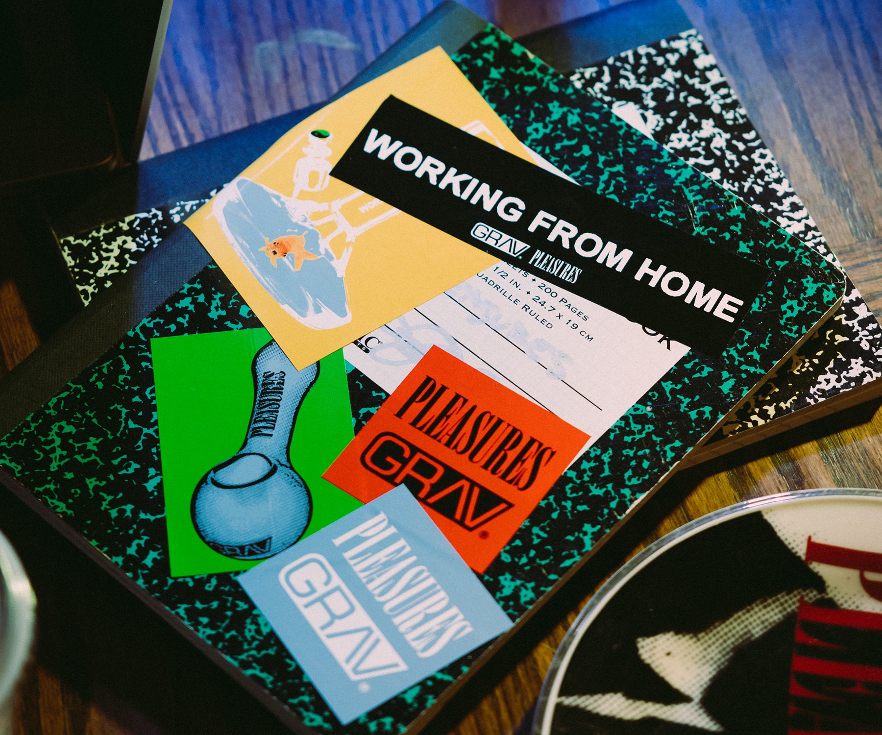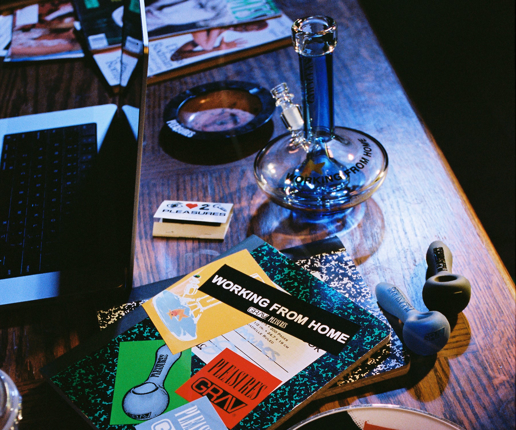 Pleasures delivers stylish streetwear with a rebellious streak, pushing boundaries at the intersection of fashion, art, and music. GRAV® designs and produces premium hand-blown glass to turn cannabis consumption into a daily art. As two citizens of subculture, a collab just makes sense. We’ve combined our powers to create a limited-edition collection of merchandise and smokeables to turn the home office into a hotbox.